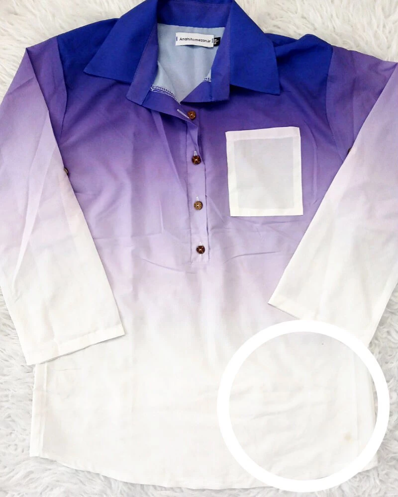 نکته : در قسمت جلو شومیز چند لکه وجود دارد که ممکن است با شستشو تمیز شود