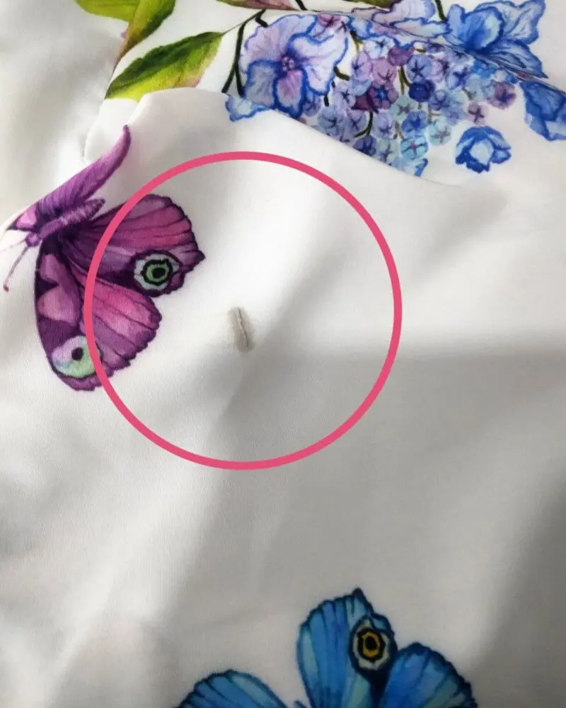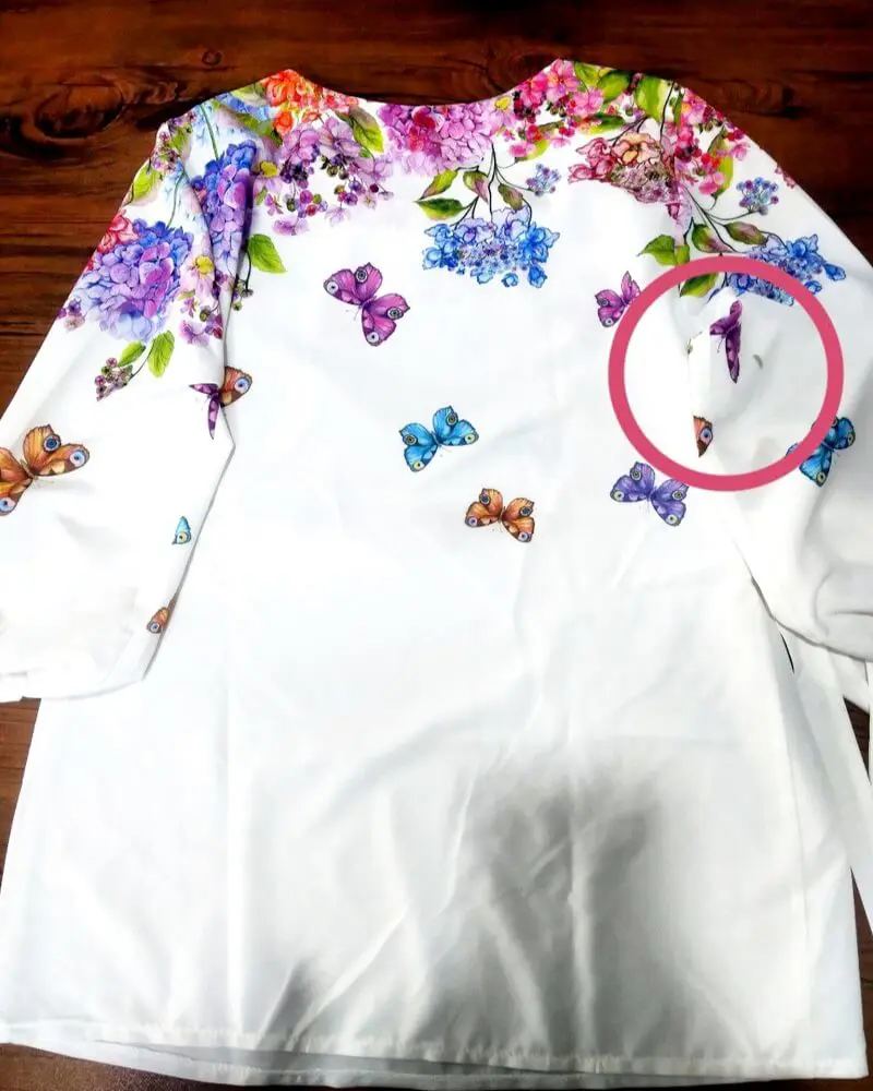 نکته : در قسمت پشت شومیز آستین تراکم نخ و لکه دارد