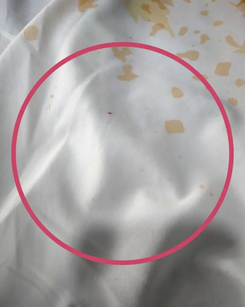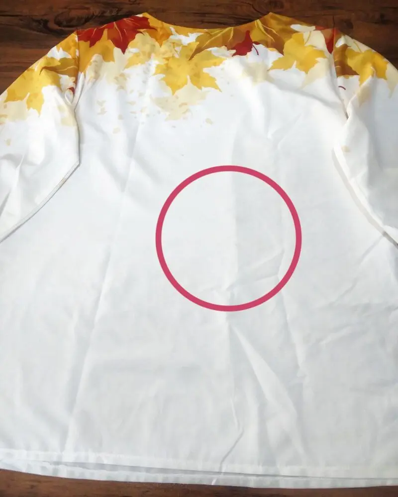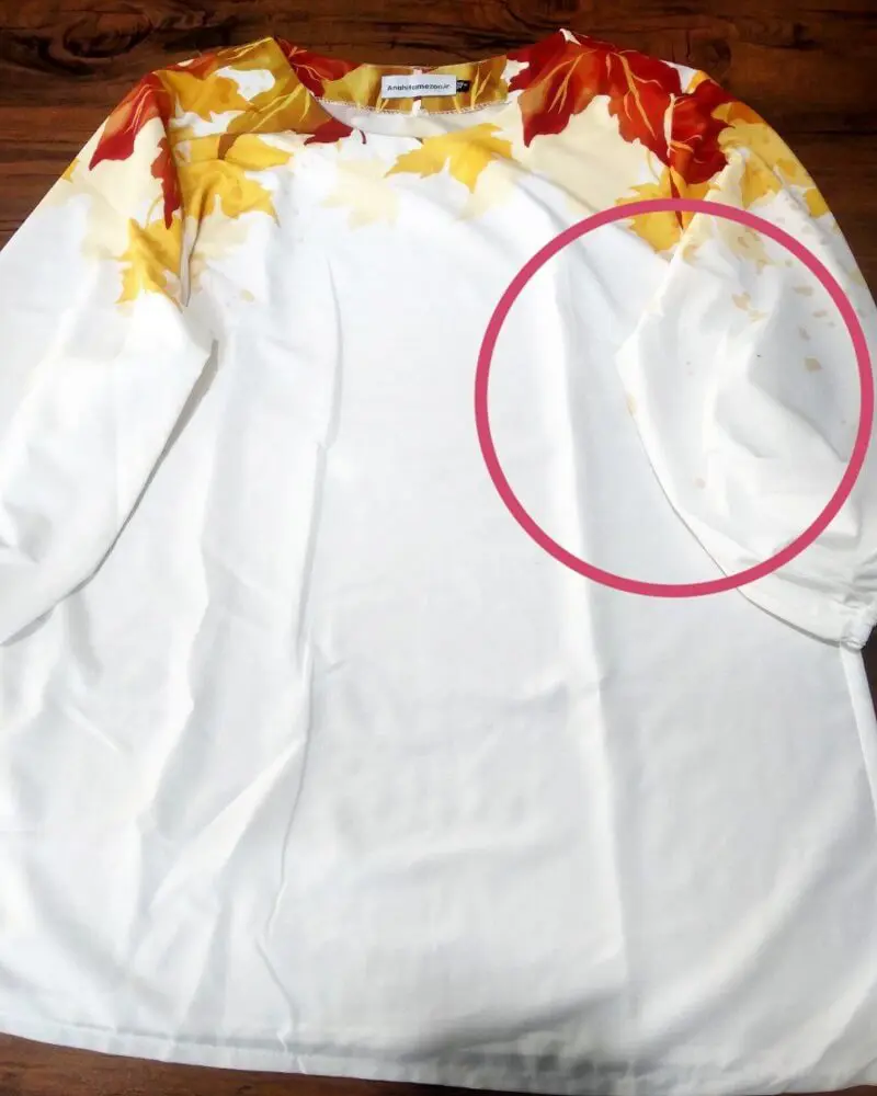 نکته : در قسمت آستین لکه چاپی دارد و در قسمت پشت شومیز لکه دارد.