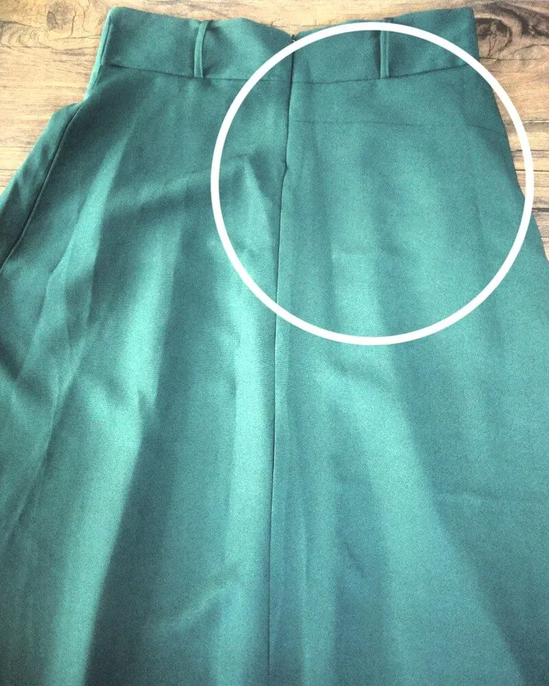 نکته : در قسمت پشت دامن تراکم نخ در پارچه وجود دارد