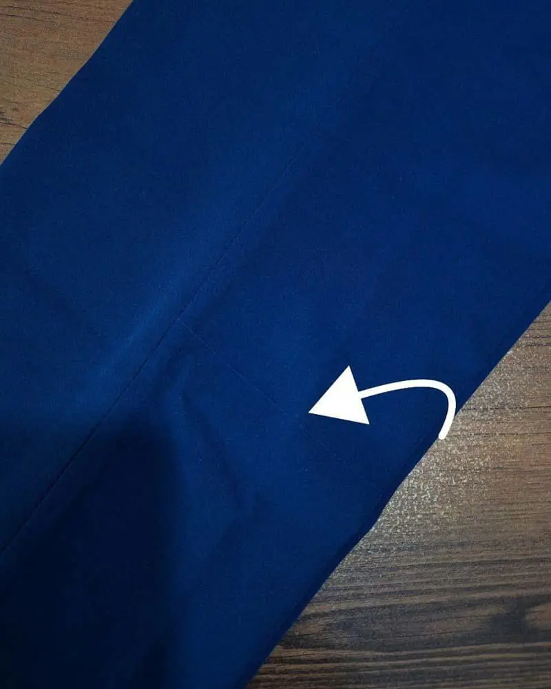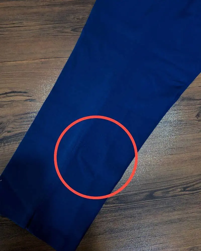 نکته : در قسمت پشت شلوار سمت پایین تراکم نخ در پارچه وجود دارد.