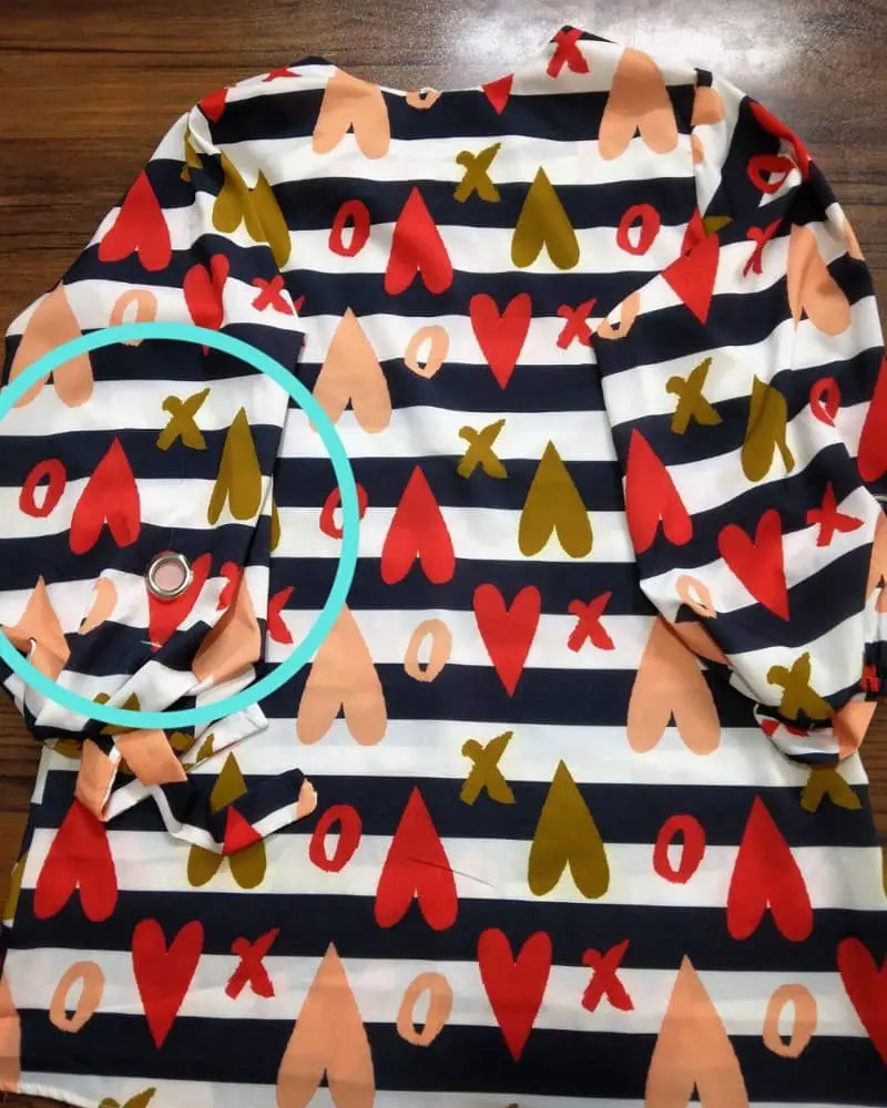 نکته : در قسمت واشری آستین نخکشی جزیی دارد و در قسمت پشت شومیز سرشونه نیز نخکشی دارد.
