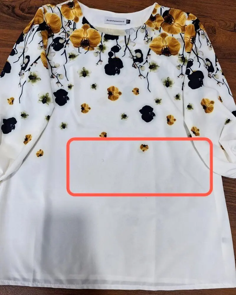 نکته : در قسمت جلو شومیز مشکل چاپی به صورت لکه های جزیی دارد