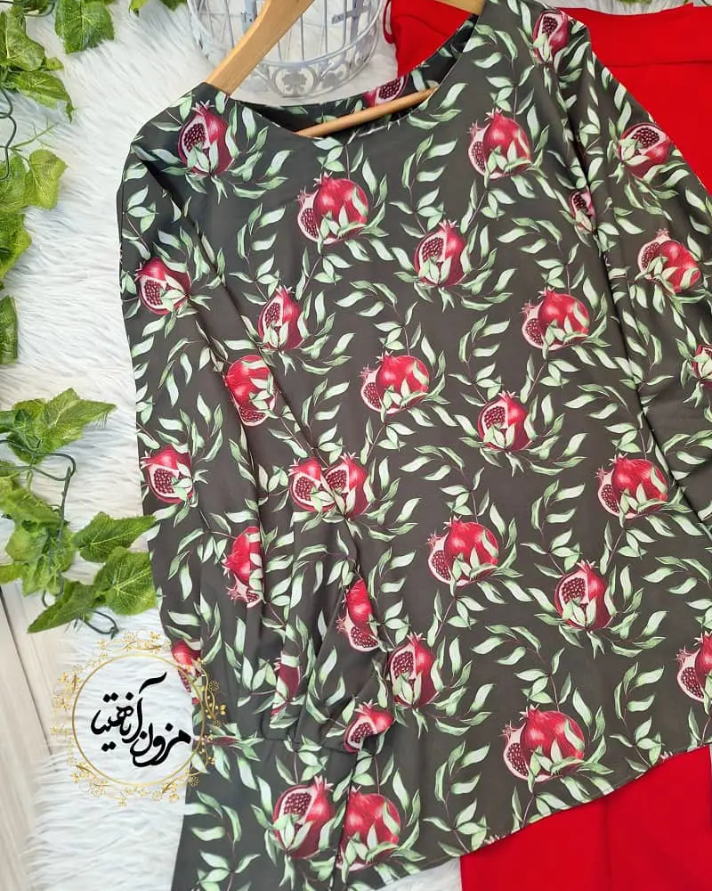 شومیز آستین کیمونو بگ مشکی قرمز طرح انار شاخه طلایی آستین کیمونو/یقه گرد/جنس کرپ بوگاتی/فری سایز 0% تمام شد