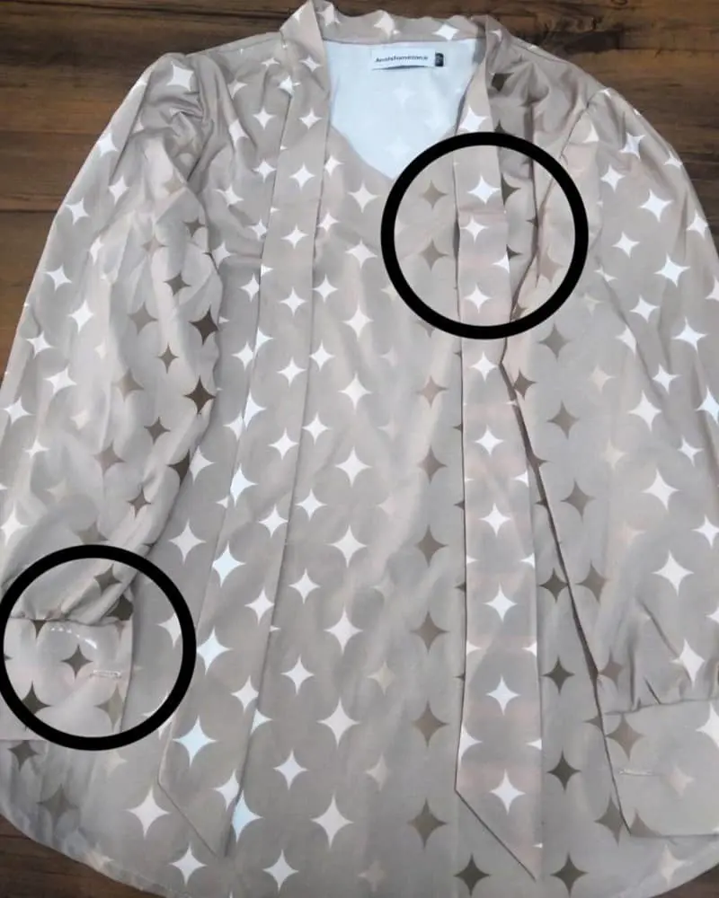 نکته : در قسمت سر آستین لکه چاپی دارد و در قسمت کراوات درز دوخت وجود دارد