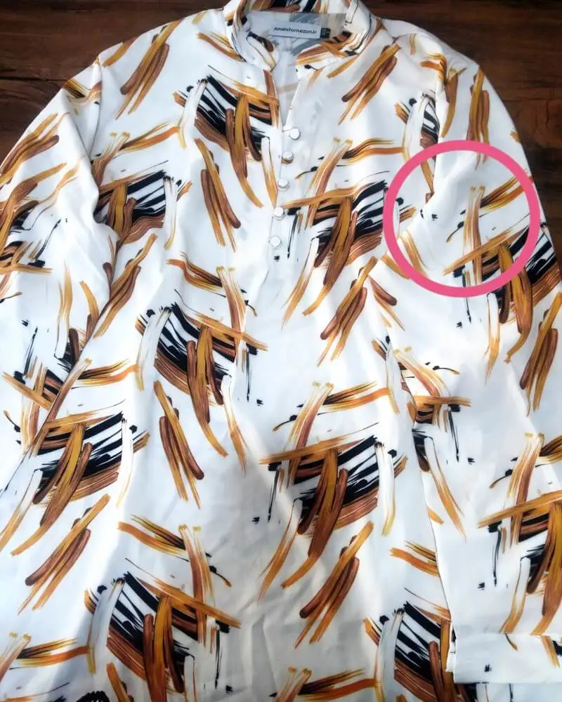 نکته : در قسمت پشت شومیز تراکم نخ و نخکشی وجود دارد.