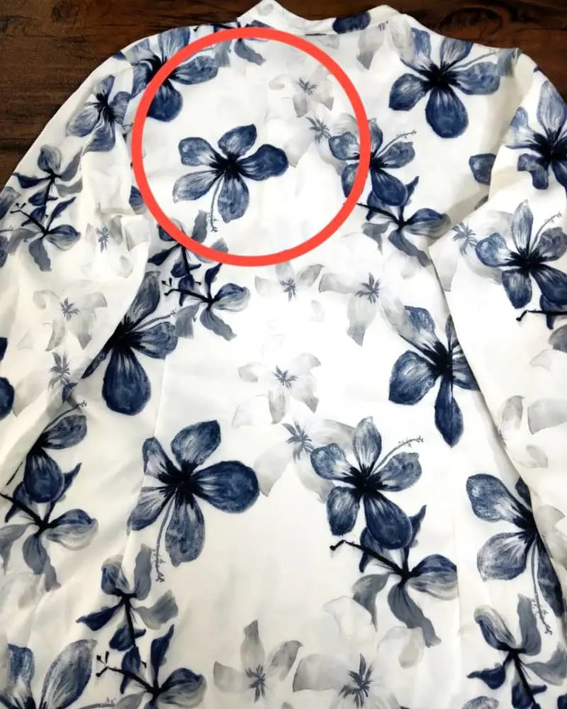نکته : در قسمت پشت شومیز لکه چاپی دارد