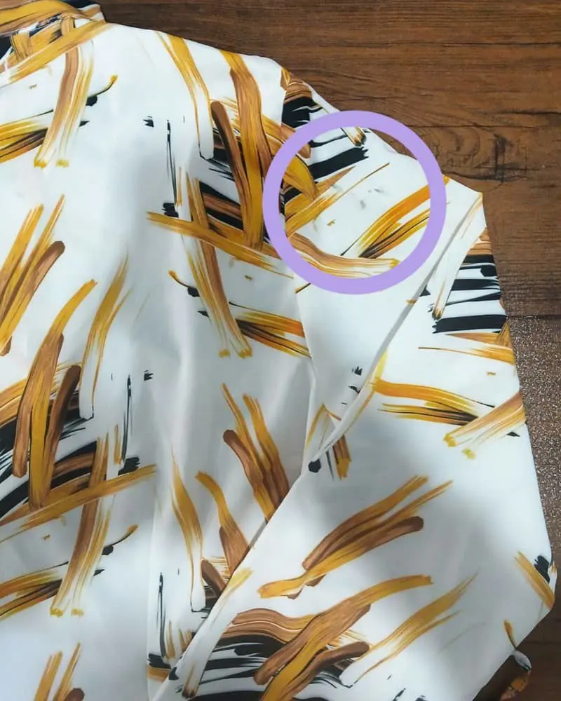 نکته : در قسمت روی آستین لکه چاپی دارد.