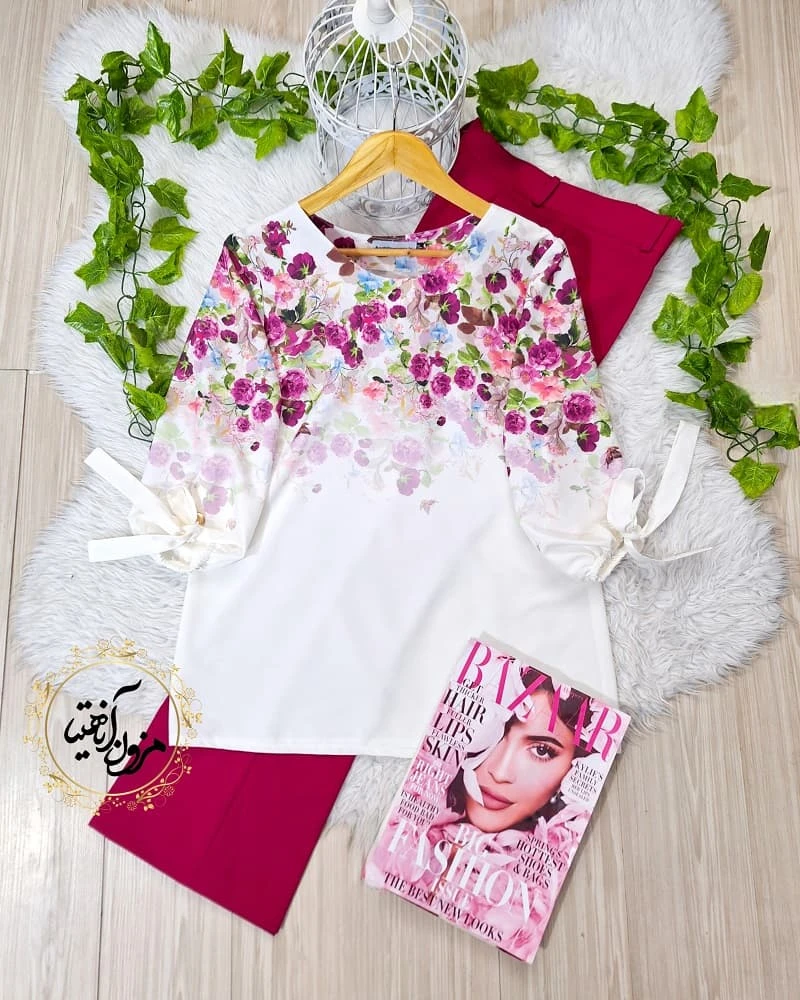 توجه داشته باشید طرح و رنگ شومیز دقیقا همین هست فقط محل قرارگیری گلها ممکنه کمی به سمت راست یا چپ باشه که به دلیل محل برش پارچه است.