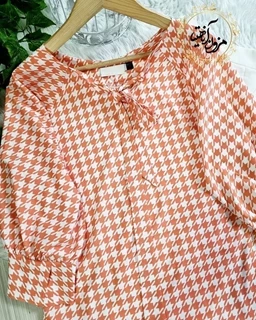 شومیز یقه پاپیونی سفید نسکافه ای طرح فندی بژ آستین کیمونو/یقه پاپیونی/جنس کرپ بوگاتی/سایز 2 و 3 0% تمام شد